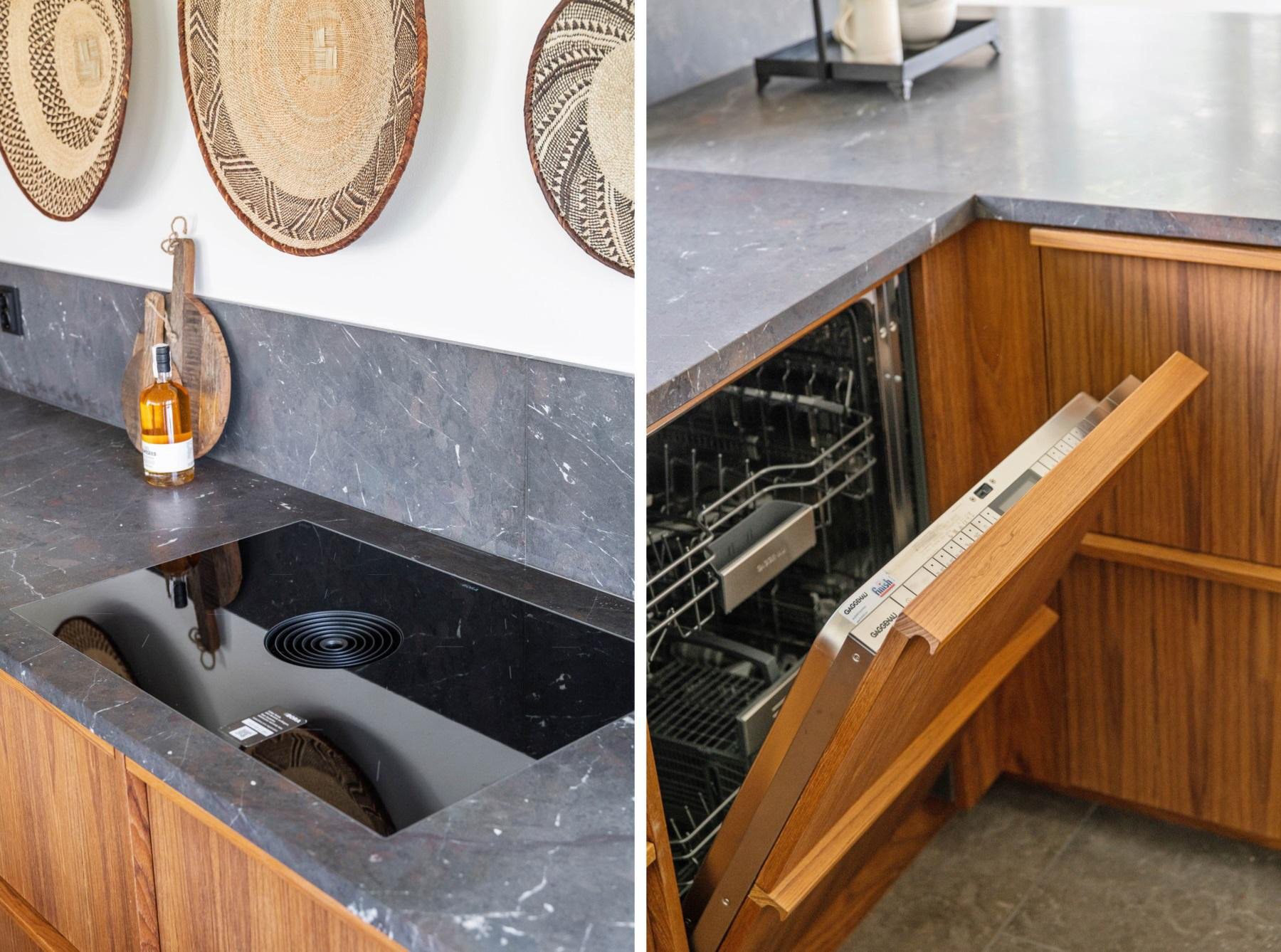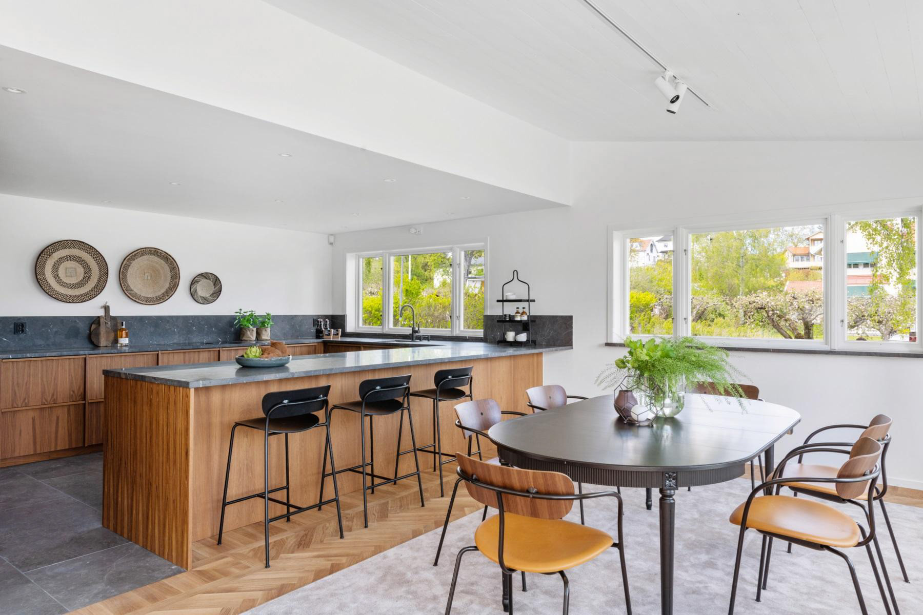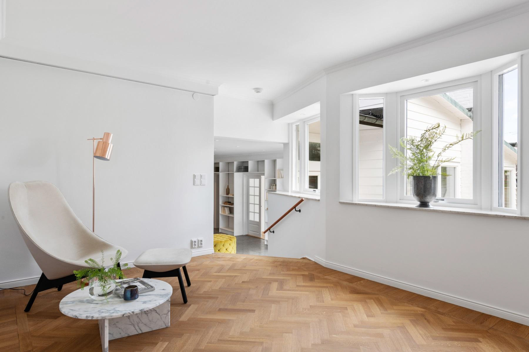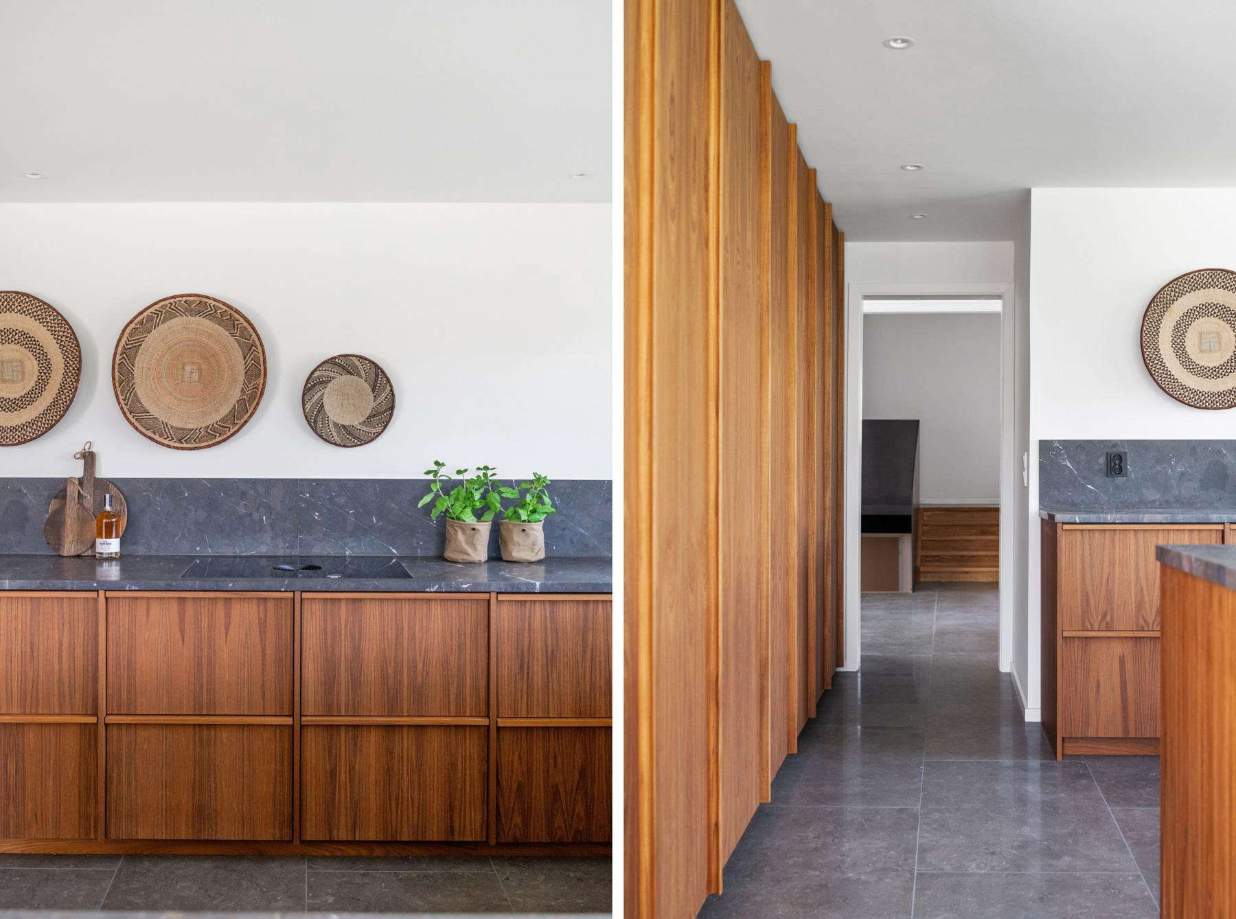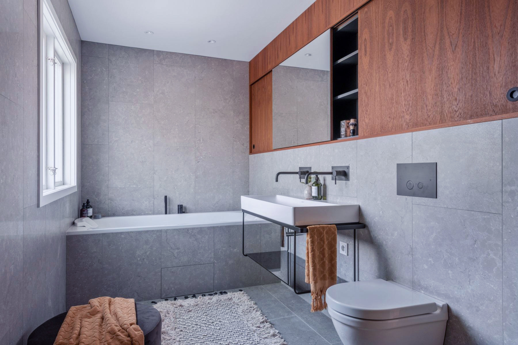 A complete update of an existing house, new kitchen with pattern matched teak veneer. Custom built bathroom furniture and closets supply the minimalistic white space with warmth and detail.